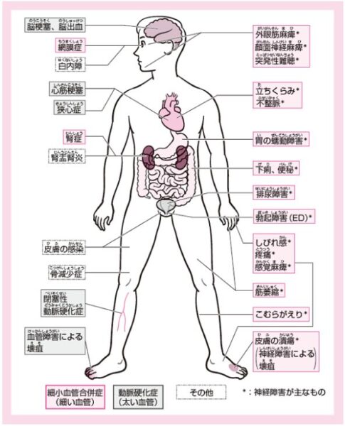 しかし高血糖を放置すると、次のような重い合併症につながります。