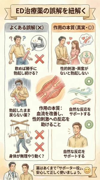 ED治療薬を服用することで血流が改善し、EDが改善されることが期待できます。