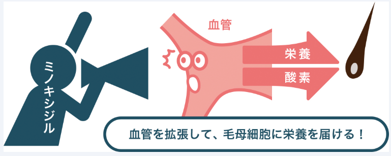 ミノキシジルは頭皮の血管を拡張し、血流を改善することで、毛根へ栄養と酸素を十分に届けます。