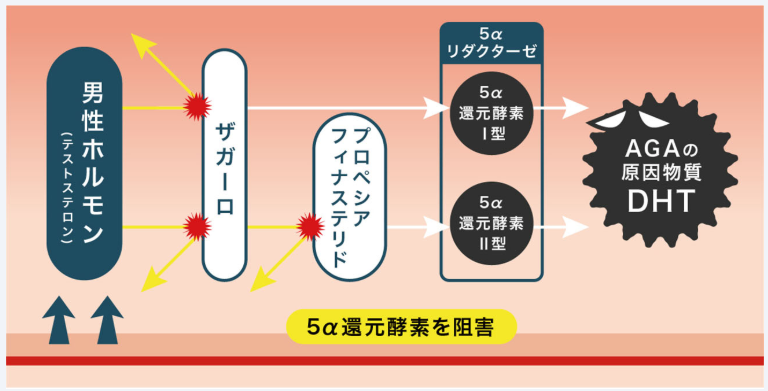 AGA(男性型脱毛症)の治療には、悪玉男性ホルモン(DHT)を抑える必要があります。